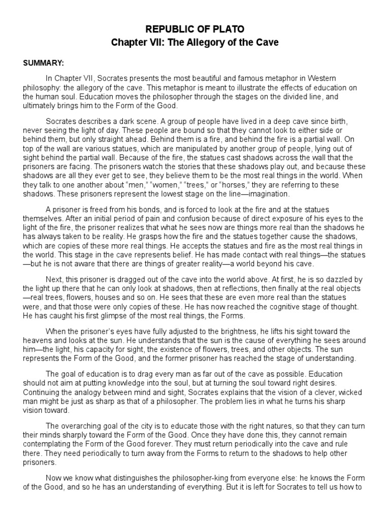 Plato S Allegory Of The Cave Analysis And Summary Research Paper